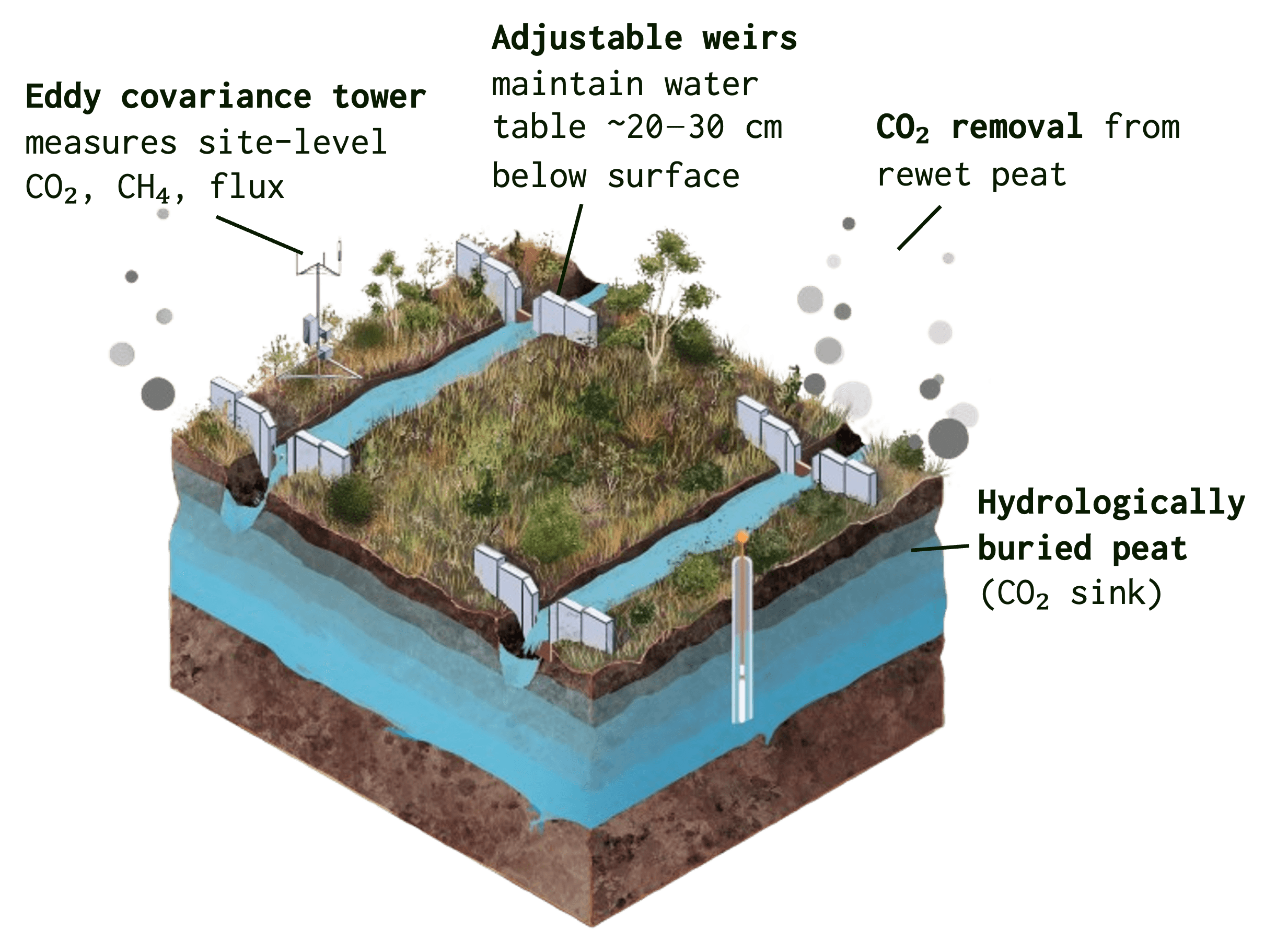 Immediately halt ongoing carbon emissions and convert degraded peatlands back into long-term, effectively permanent carbon sinks